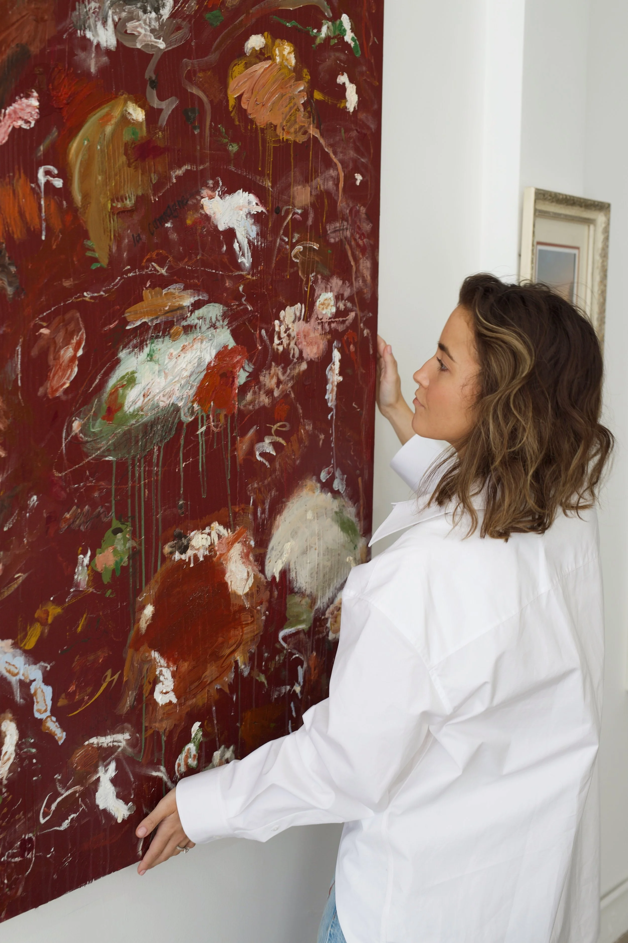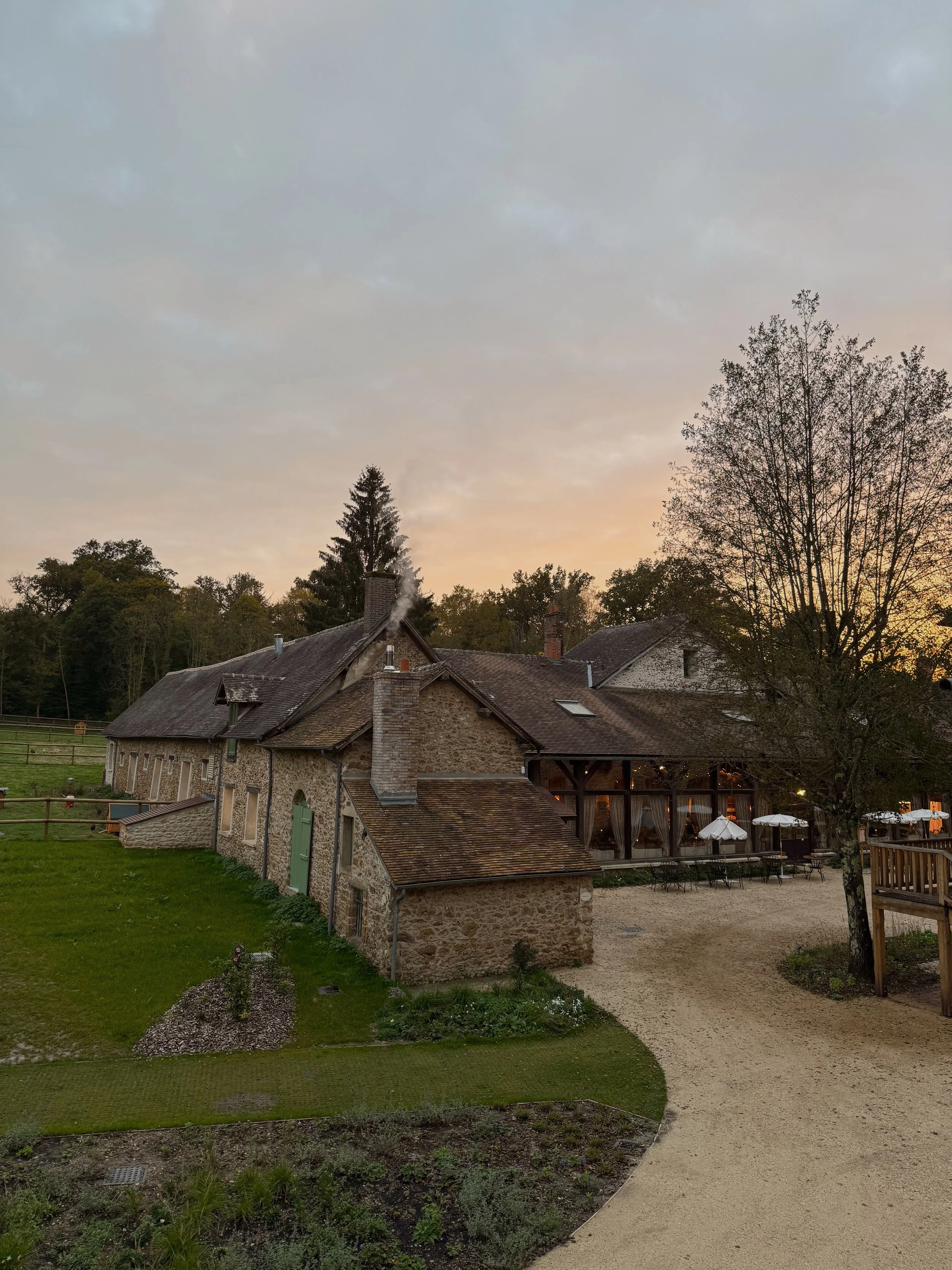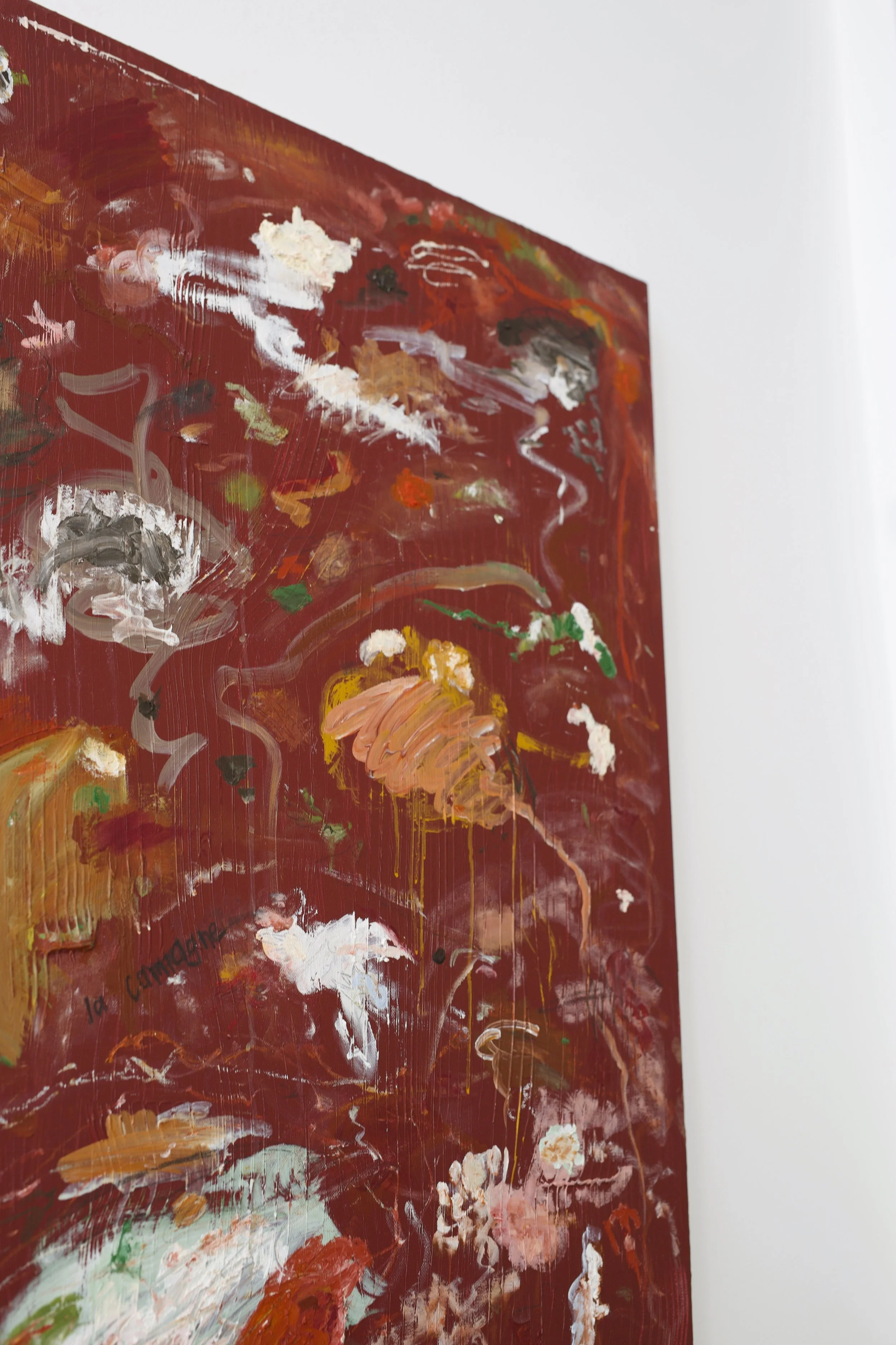 The artwork “La Campagne” (‘The Countryside’) draws inspiration from a tranquil sunset photograph taken from Danesis’ cottage window, overlooking the farm.