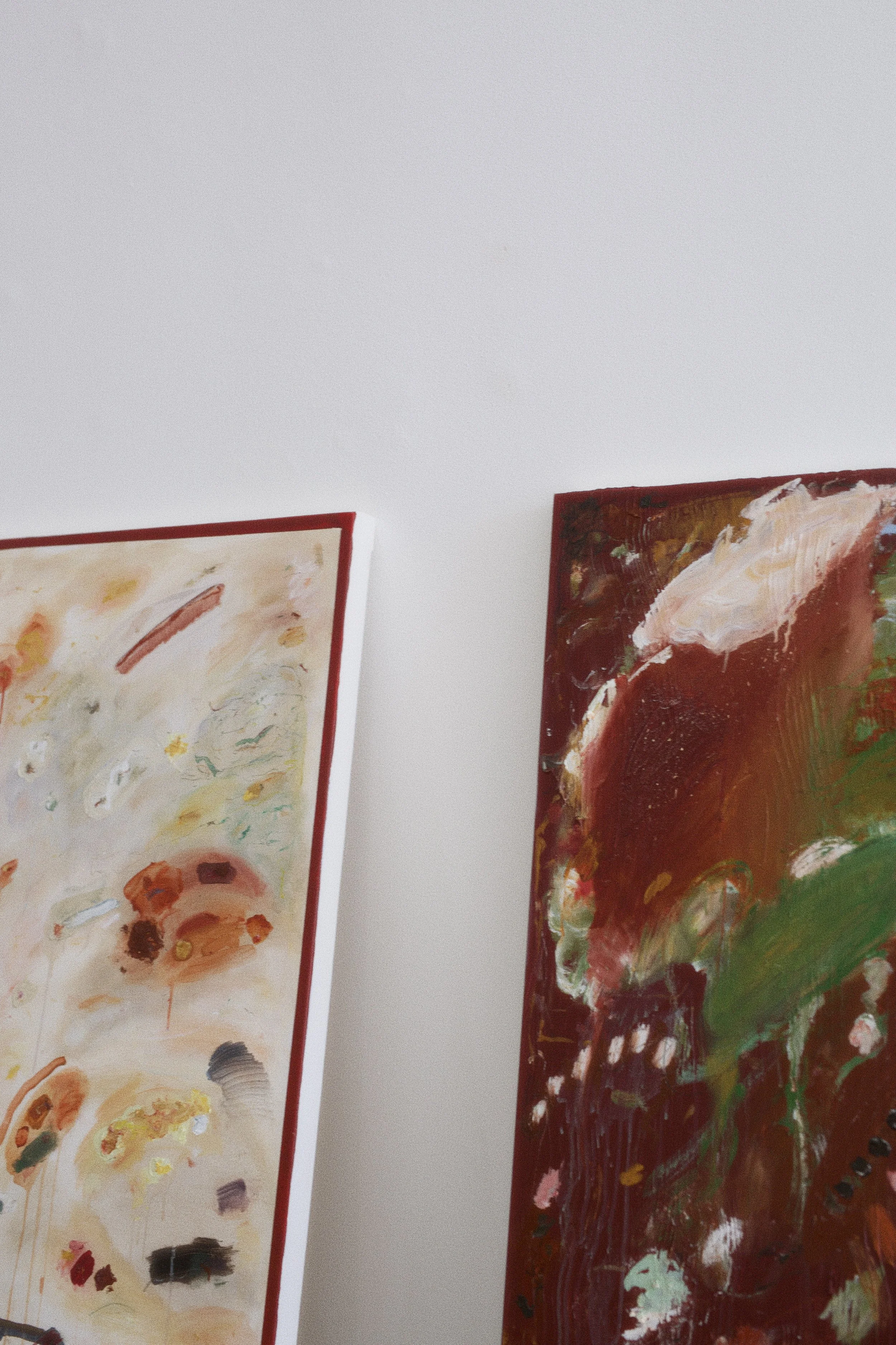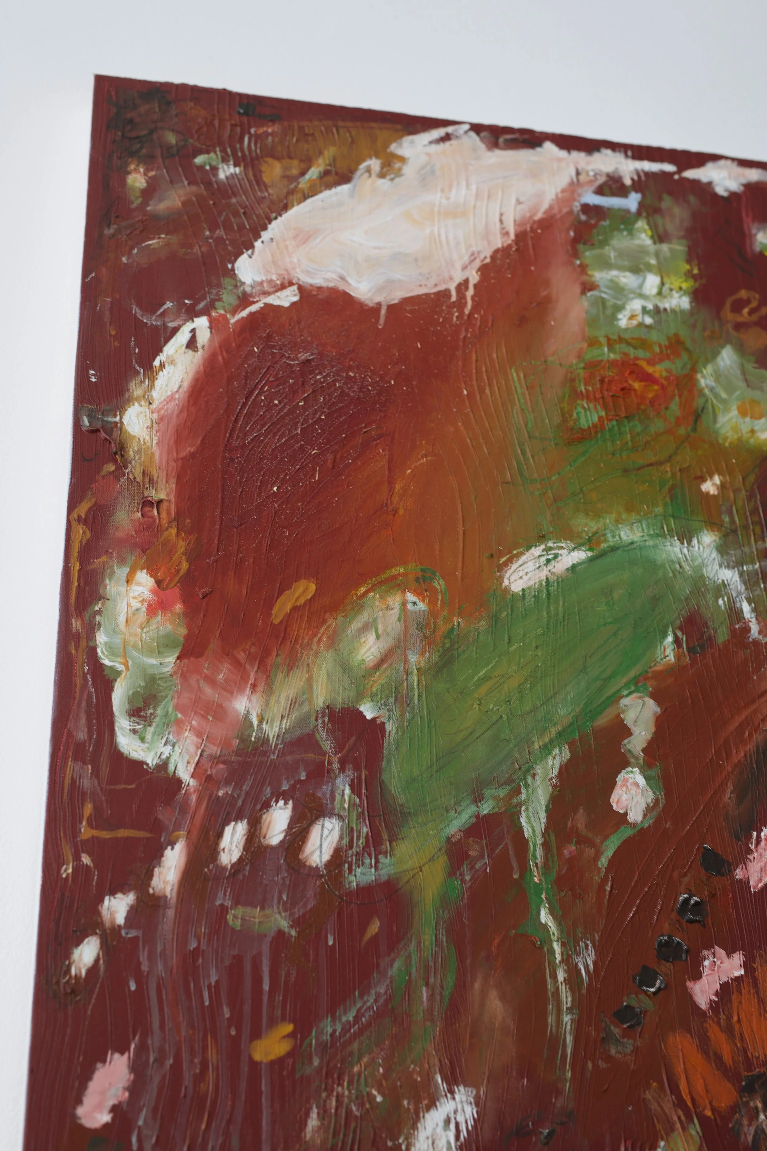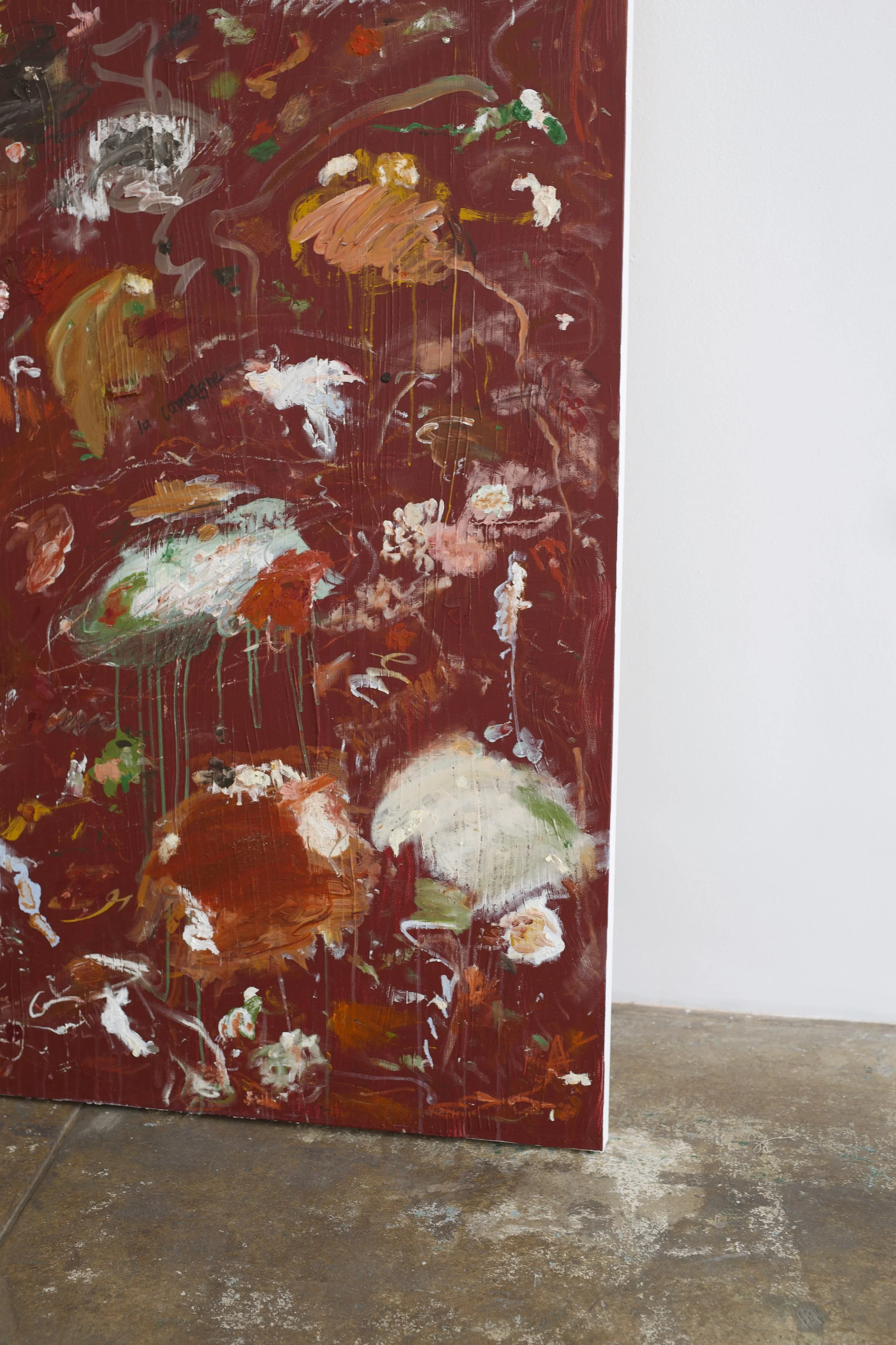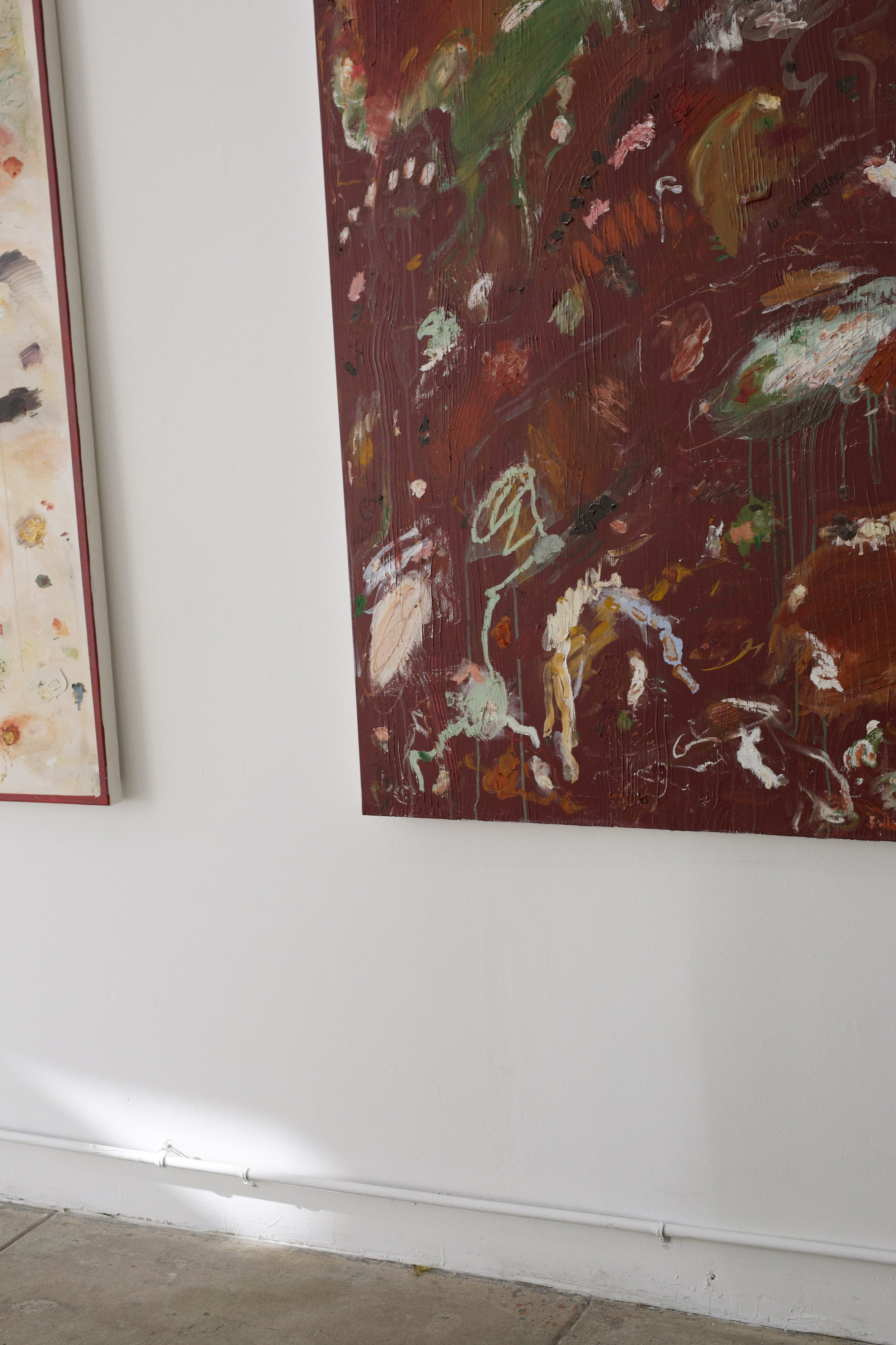 acrylics, oil pastel, oil stick, charcoal and chalk on stretched canvas