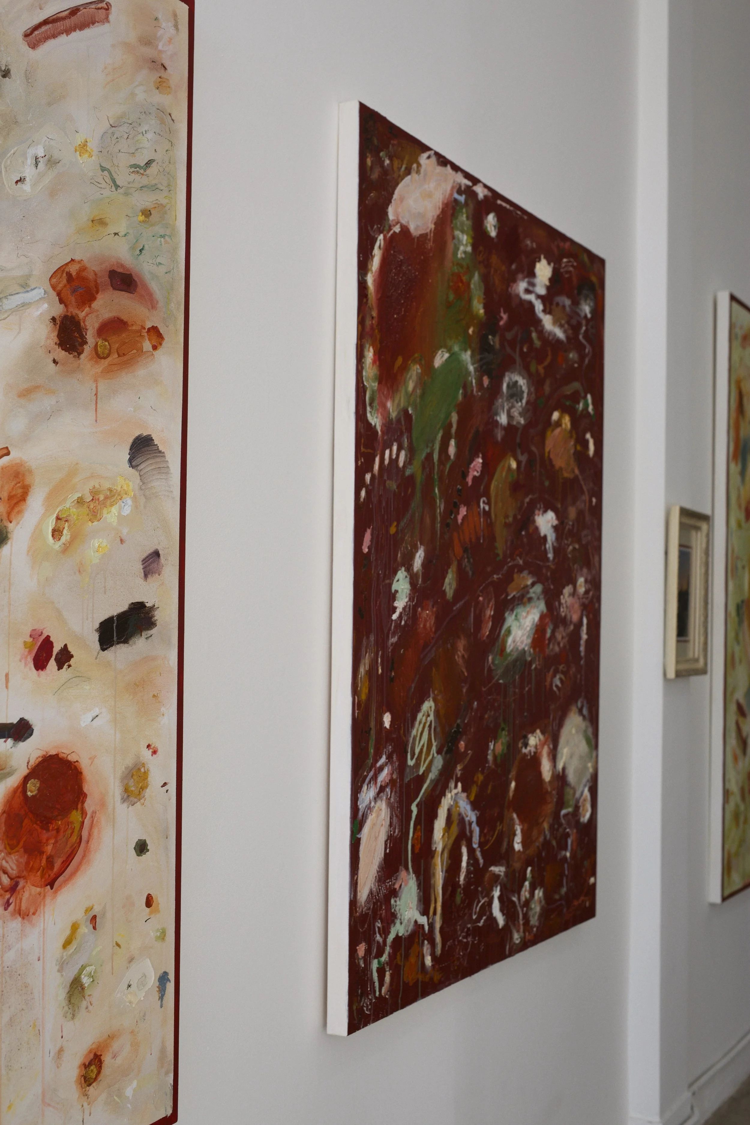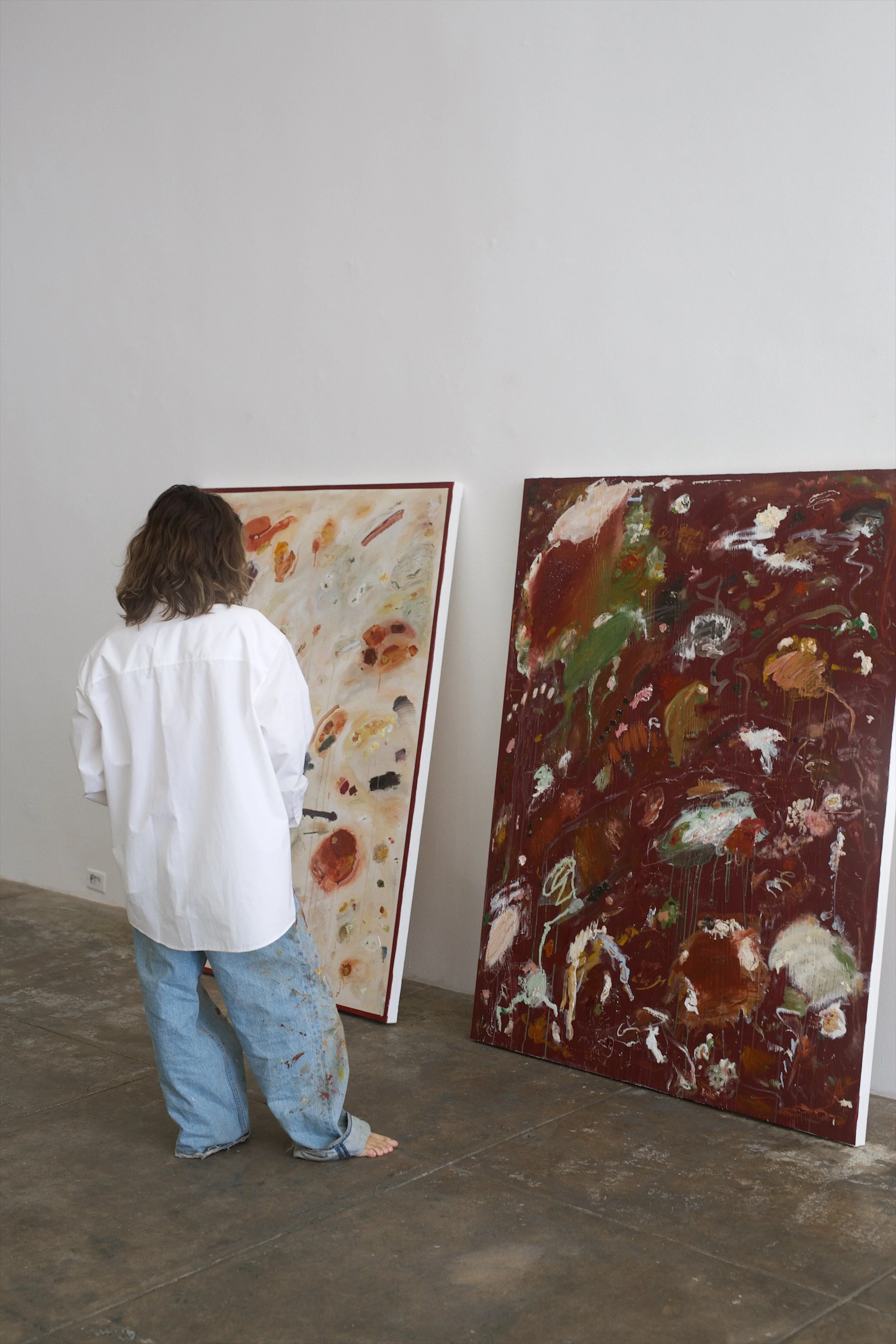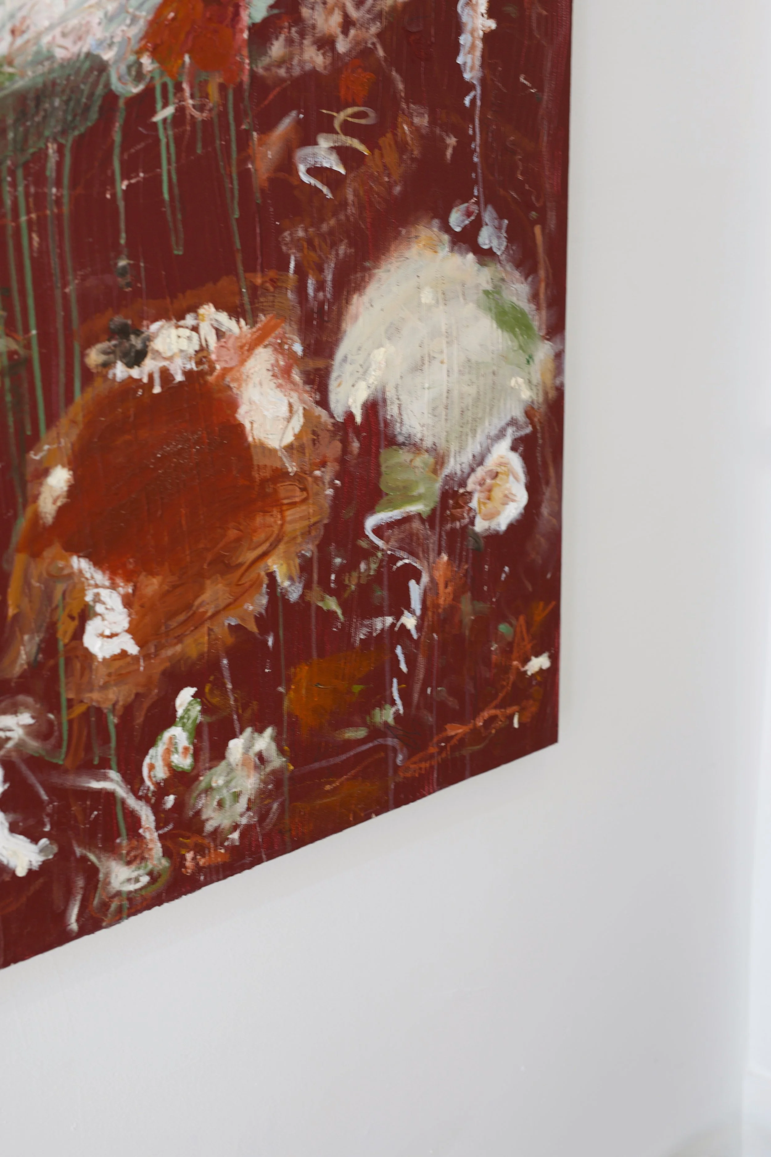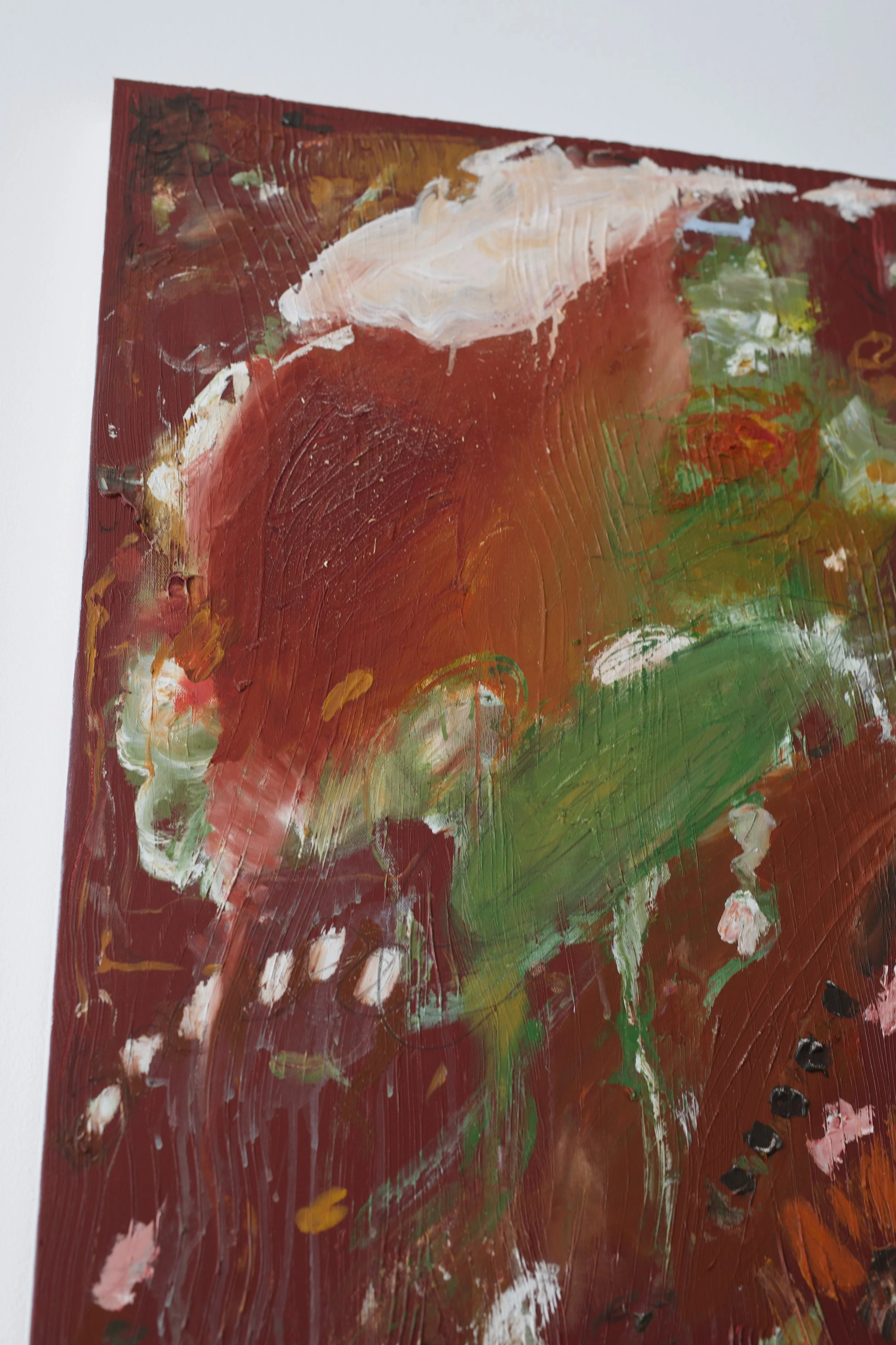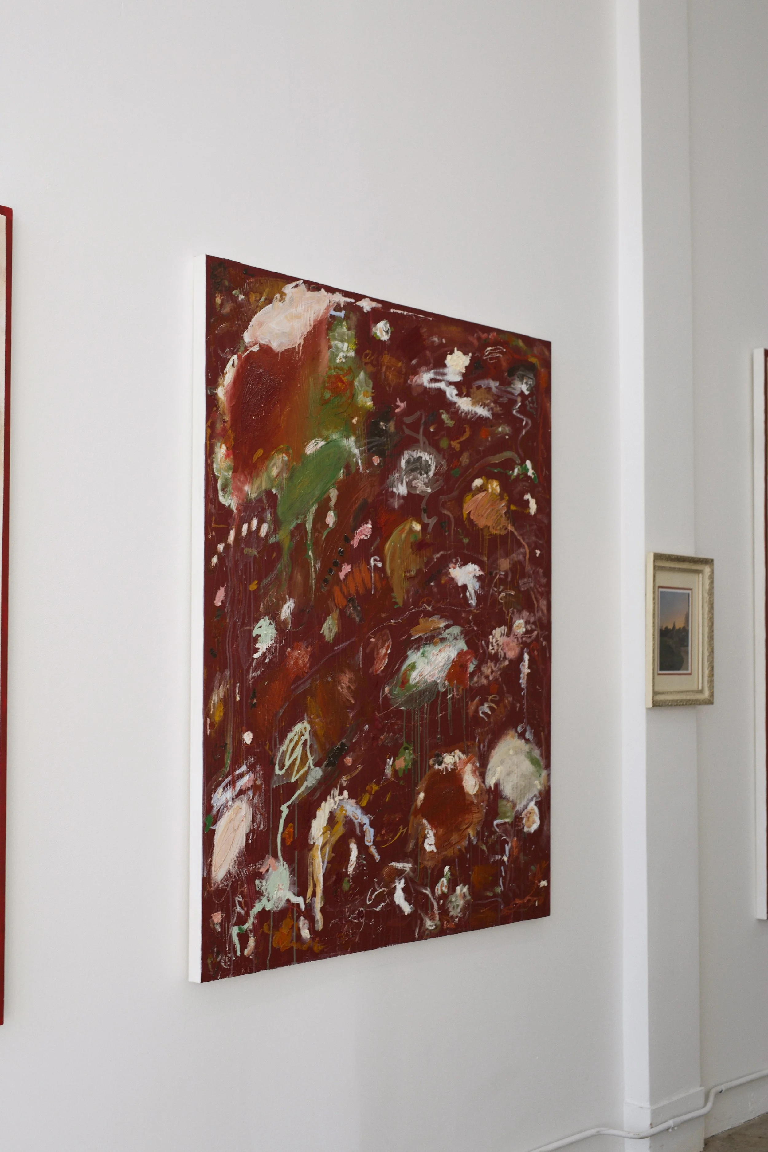 acrylics, oil pastel, oil stick, charcoal and chalk on stretched canvas