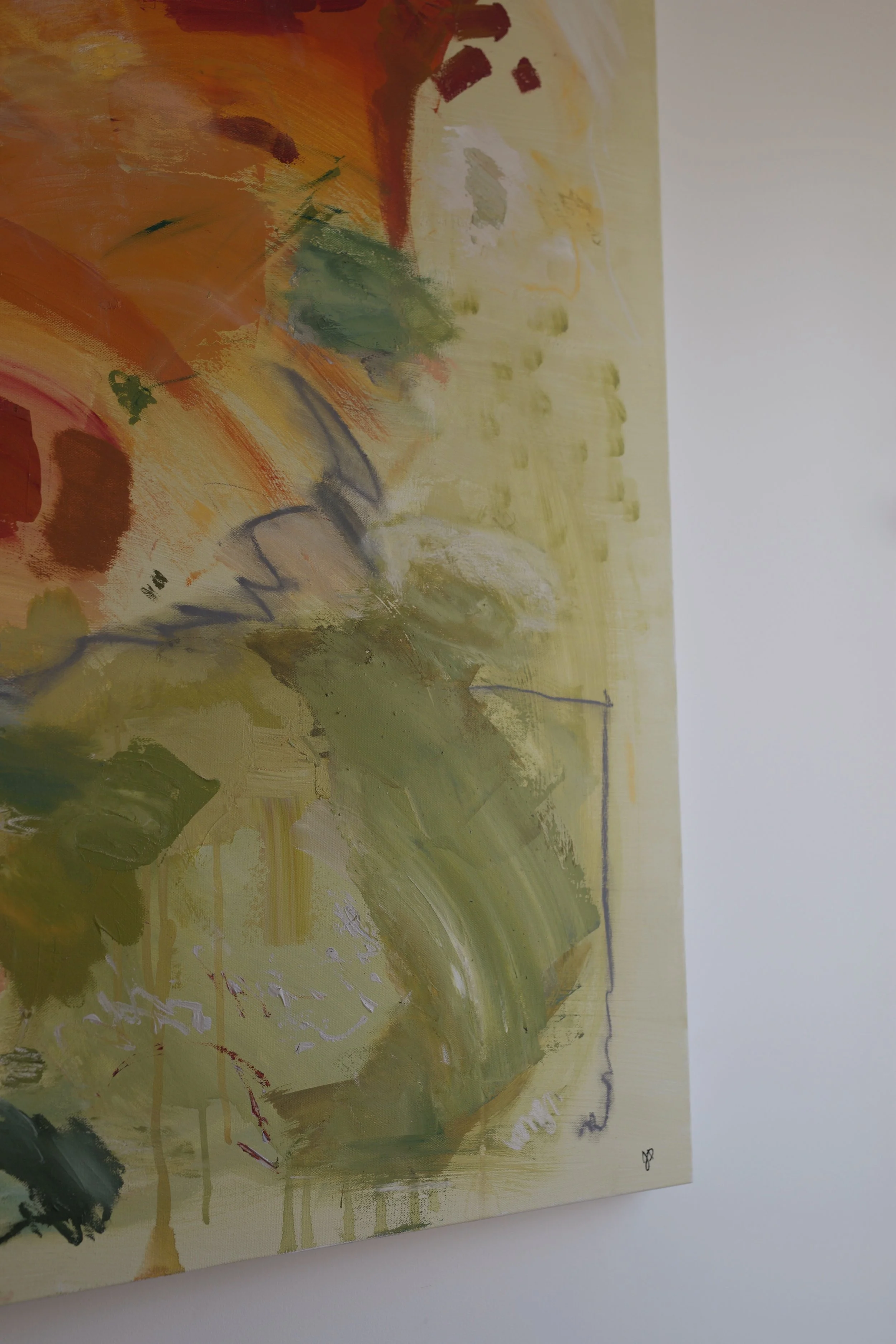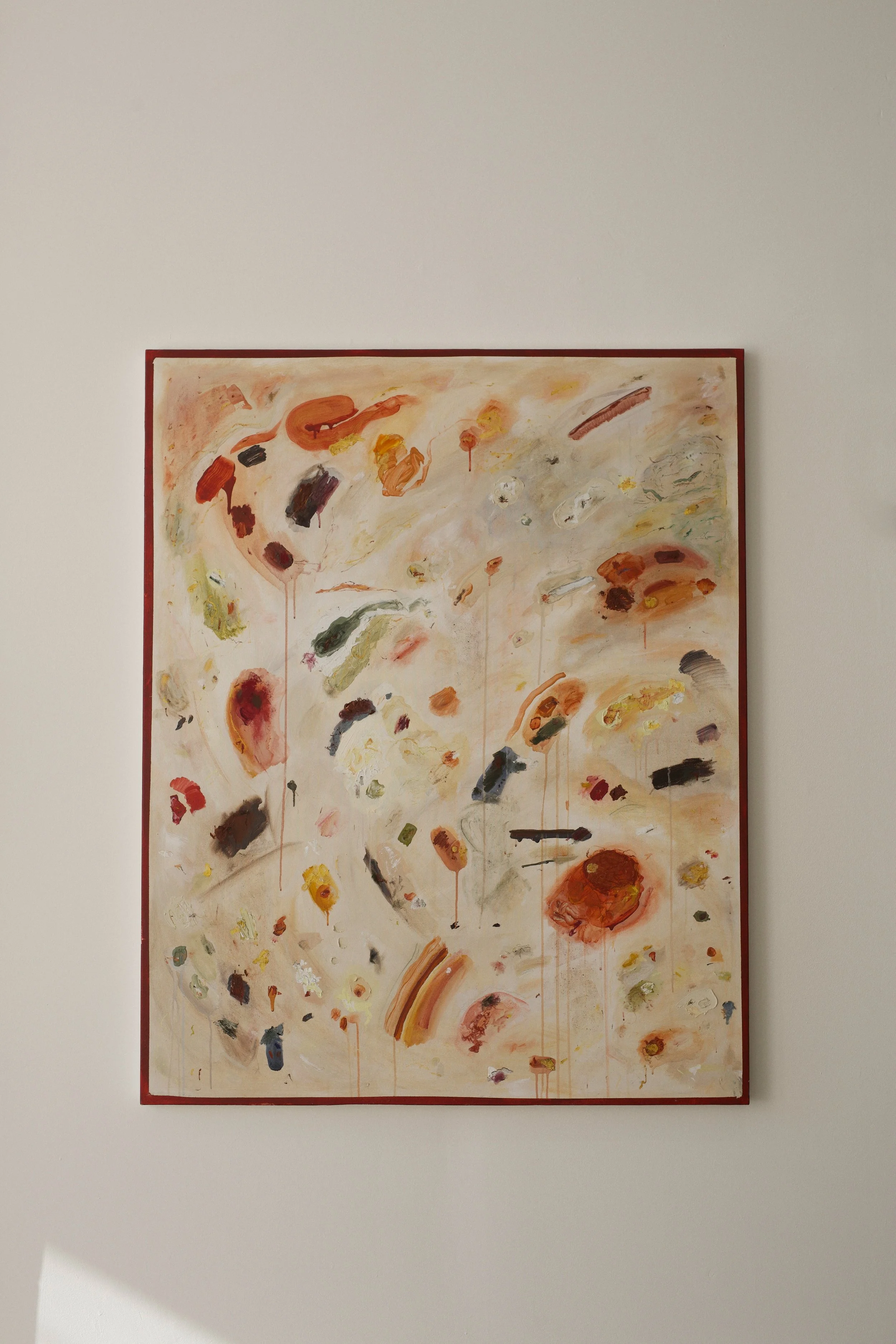 acrylics, oil pastel, oil stick and chalk on stretched canvas