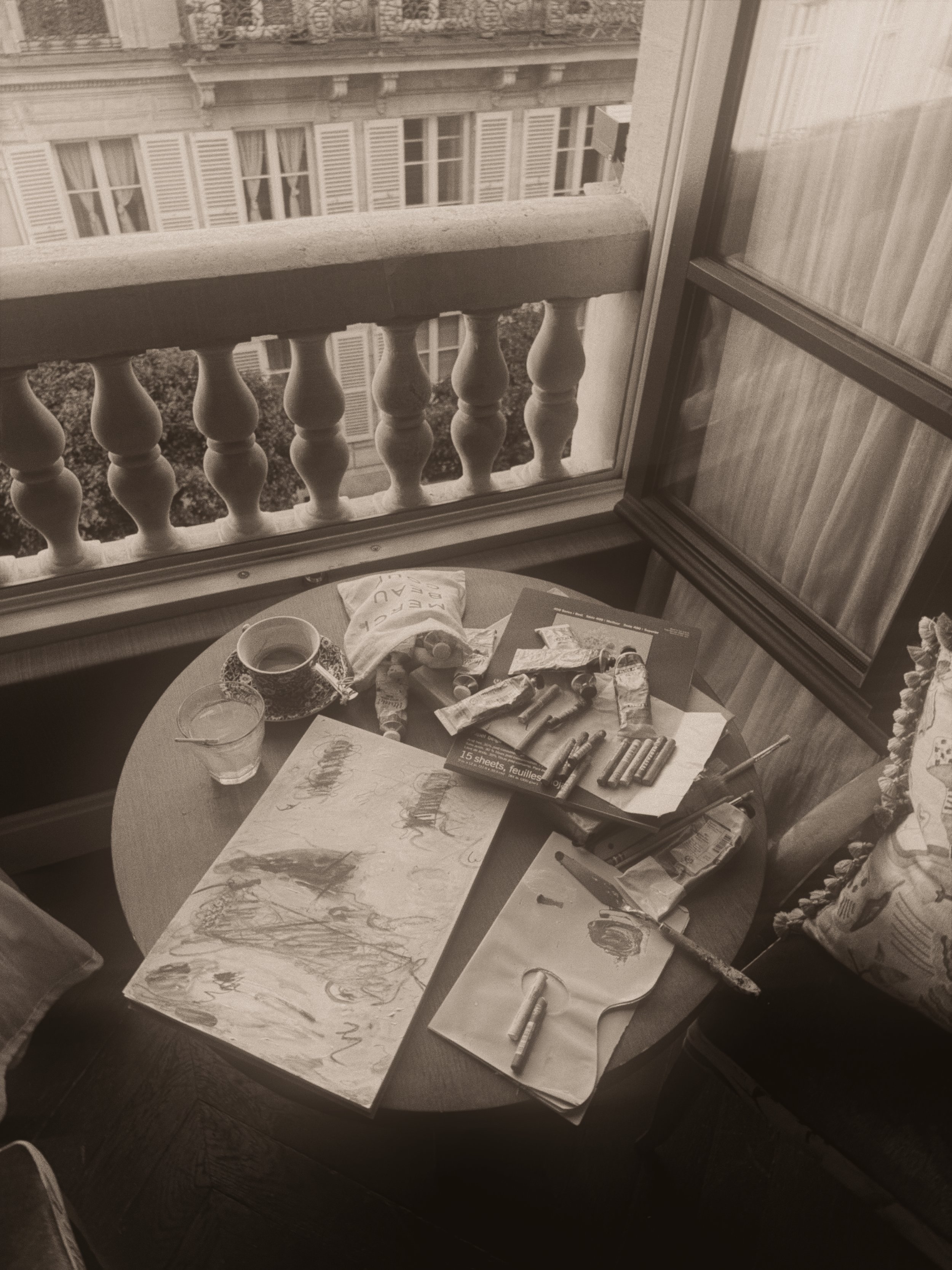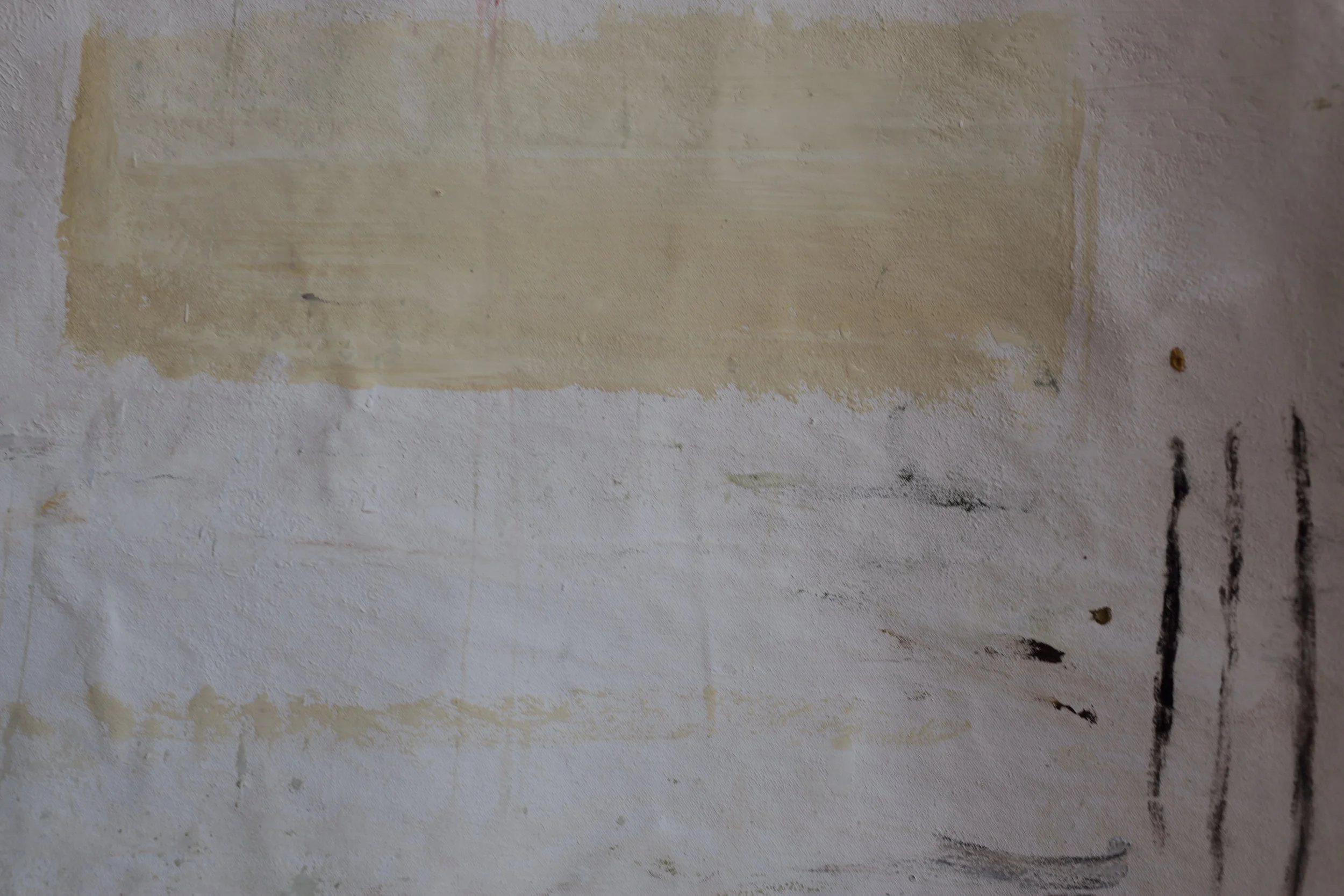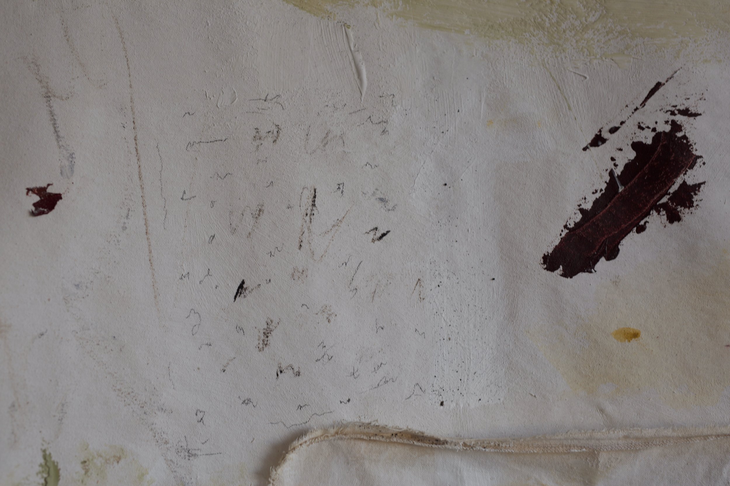 acrylics, oil pastel, oil stick, pencil, plaster and chalk on stretched canvas
