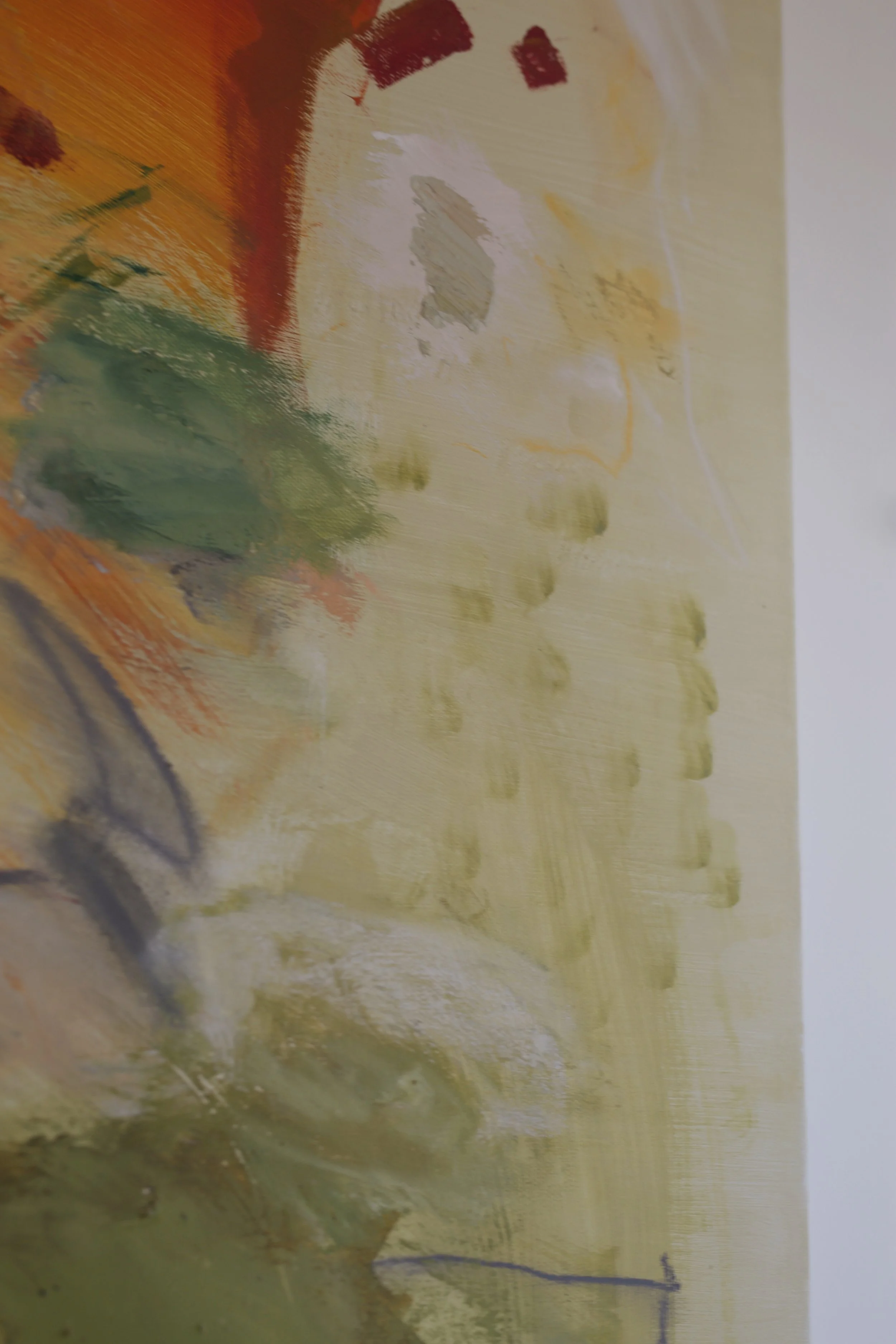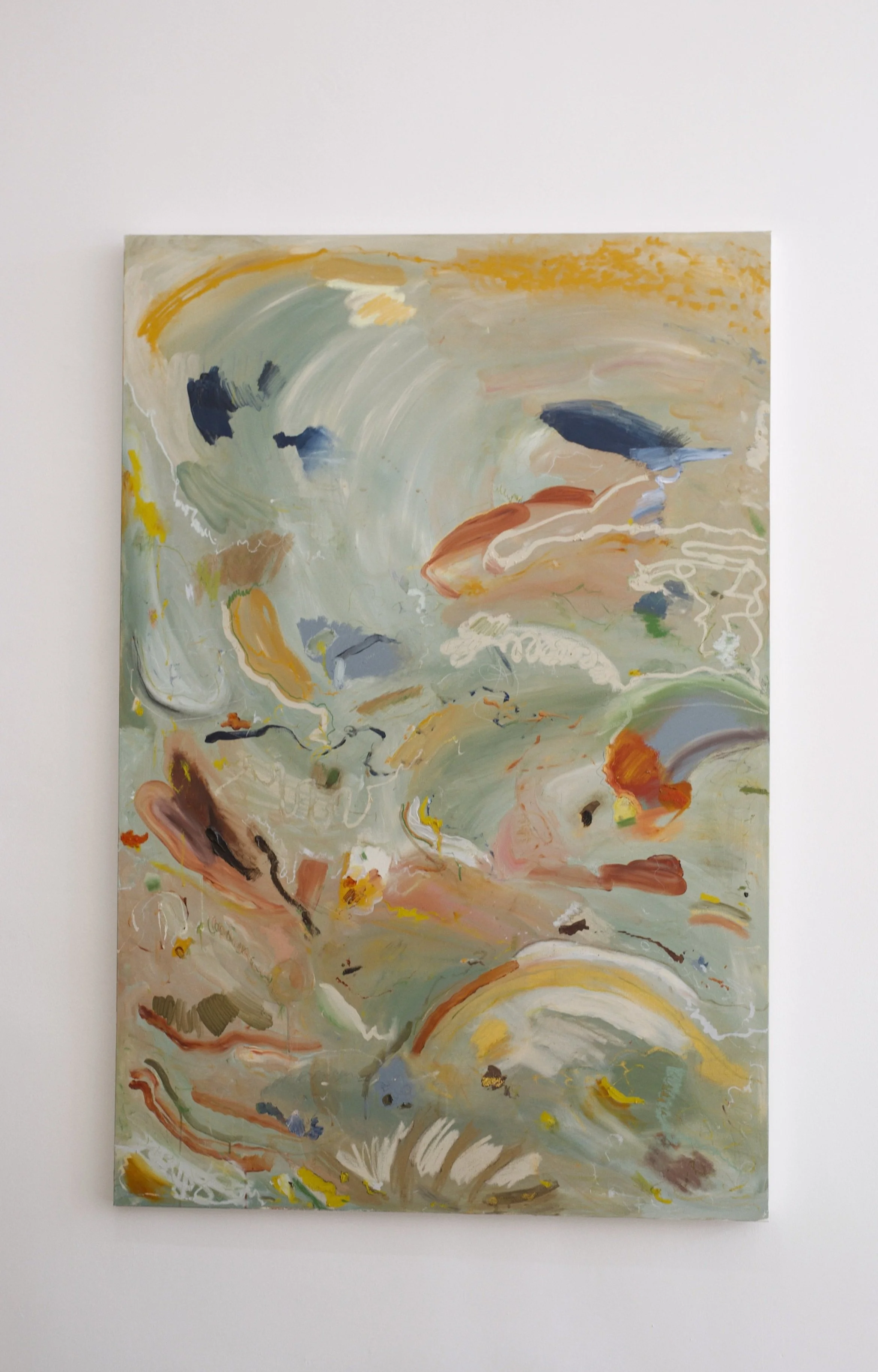 acrylics, oil pastel, oil stick, pencil and chalk on stretched canvas